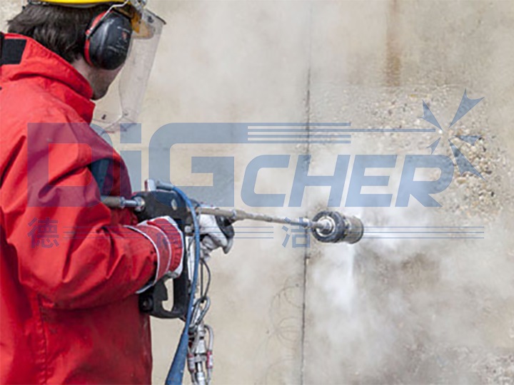 高壓水混凝土表麵鑿毛技術是由高壓泵對水體進行加壓(yā),產生100~280 MPa的高壓水射流射入混凝土表麵。高壓水(shuǐ)在混凝土孔(kǒng)隙中產生一個超壓,當其壓力超過混凝土的抗(kàng)拉強度時,混凝土(tǔ)發(fā)生破(pò)碎。此方(fāng)法效率很高,可根據現場要求破除任意(yì)深度厚度,且機械化、自動化遙控作業安全性能很高,采用水作為工作介(jiè)質,無粉塵汙(wū)染,對保(bǎo)留結構無損傷,鋼筋(jīn)原樣保留。