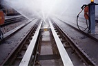 高速動車組列車在高速行駛中(zhōng)帶起的雪花結成了冰,附著在列車地盤上,這(zhè)些冰層會影響機械師對列車地盤的檢查,對行車安(ān)全帶來隱患。因此在檢修(xiū)前,機械師們先要把列車地盤和輪軸上的冰清除幹淨。這些冰大多聚集在(zài)地盤(pán)零件的空隙裏,凍的非常結實,要想把它們處理幹淨,傳統的方法是(shì)用特製的工具,一點點(diǎn)往(wǎng)下鏟。為此,北京德高潔清潔設(shè)備有限公司組織技術力量,研(yán)發了一款(kuǎn)全自動高速動車組列車底(dǐ)盤、輪軸除冰係統。