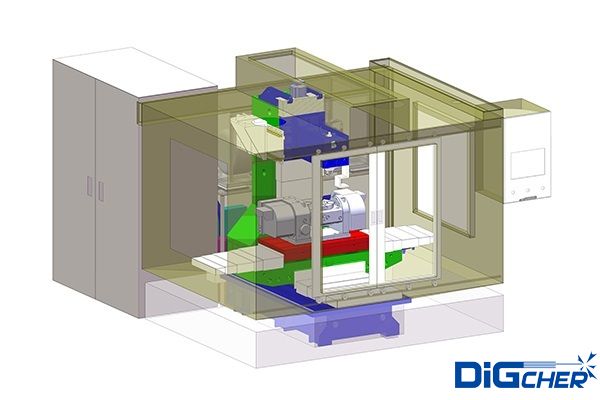 機床部分:使用BT40通用(yòng)刀柄作為高壓水噴頭載體,配(pèi)以自動刀庫換刀係(xì)統(tǒng)。高精度電(diàn)腦數控分度盤提高加工精度和加工效率。