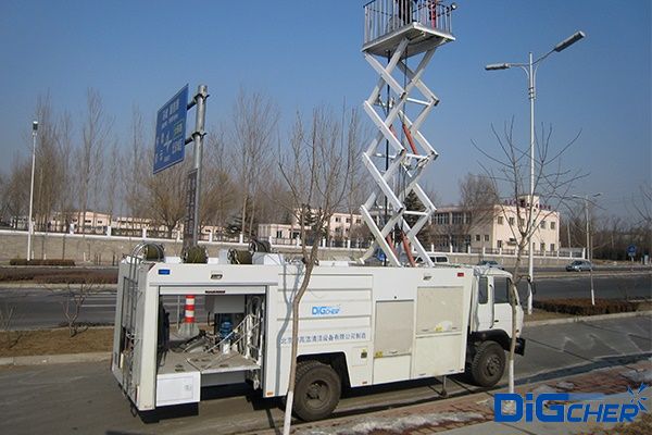 AEROWASH-858飛機清洗車由5噸水箱、8米高空升降台、8噸專用汽車底盤為基本(běn)平台,並由遠程清洗槍、近距離高壓熱水清洗設備配備小型旋轉動力刷、手動清洗裝置、人工清洗工具等組成。