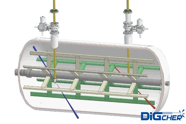 PVDF臥式反應釜自動化清洗係統-臥式(shì)反應釜清(qīng)洗裝置