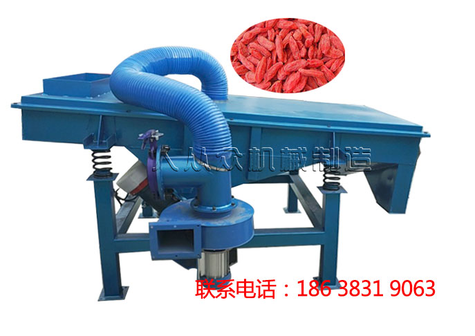 枸杞分級(jí)、除雜機由直(zhí)線振動篩配合適(shì)當網孔的(de)篩網和(hé)風機設備組成(chéng),篩網主(zhǔ)要是用於透篩大小適合的物料,而風機主(zhǔ)要的作用是吹去枸(gǒu)杞中所含的雜質。