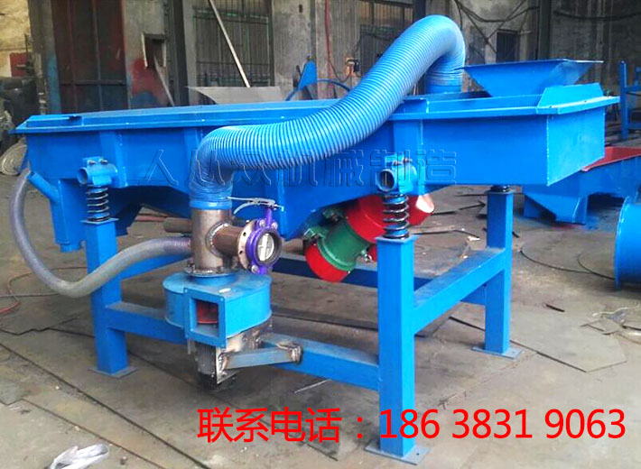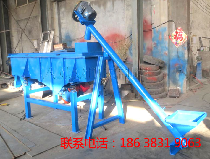 工作時候先啟動機器,運轉平穩之後,從入料口倒入枸杞,枸杞隨著振動向前躍動前進,行進至大小合適的網孔便完成透篩進入屬於自己(jǐ)的等級,通過振動流進(jìn)出料口,**終流入受料裝置,完成篩(shāi)分,可搭配上料機使用,如下圖。