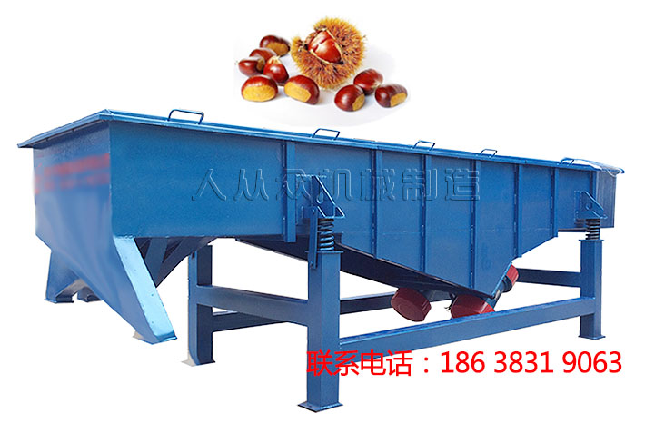板栗篩分機,主要用於板(bǎn)栗大小的分級,可單(dān)層或多層使用,多可達到五層,板栗篩分機如果篩孔比較大,產量要求較高時篩框可製成鋼質結構(gòu),若有要(yào)求,與物料接觸部分可采用不鏽鋼製作,具(jù)有篩分效率高,處理量大等特點。