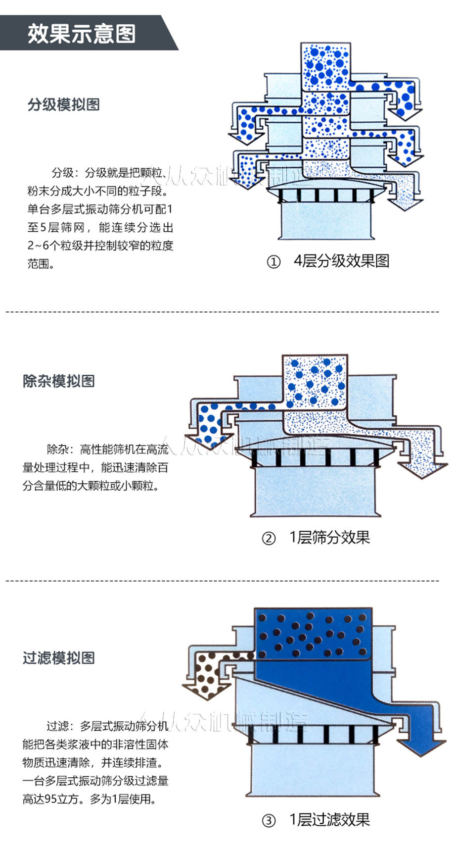 5.旋振篩的篩網可以滿足多種(zhǒng)要求,篩(shāi)網可以單層和多層使用。
