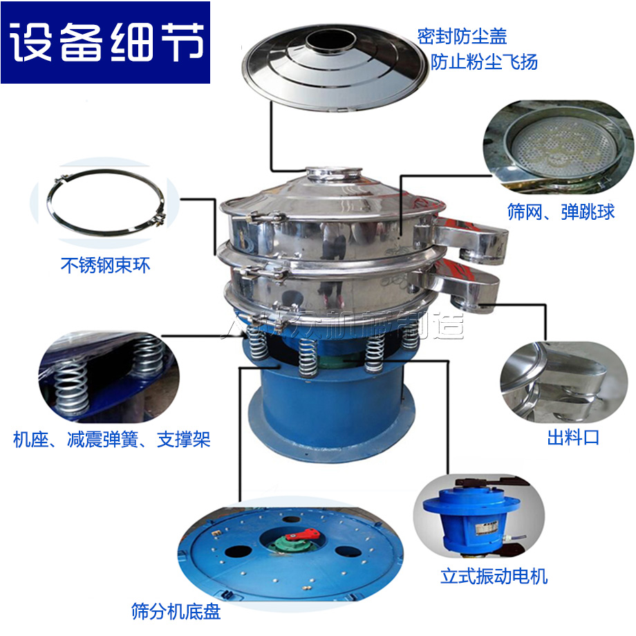 該設備可根據客戶不同需求1-5層同時使用,篩機1-5層、304不鏽及(jí)碳鋼材質等各種型號齊全,可滿足各種粉末、顆粒篩分需要求及液體過濾需求,也可設計為閘門(mén)式旋振篩、加緣式旋振篩等機型。