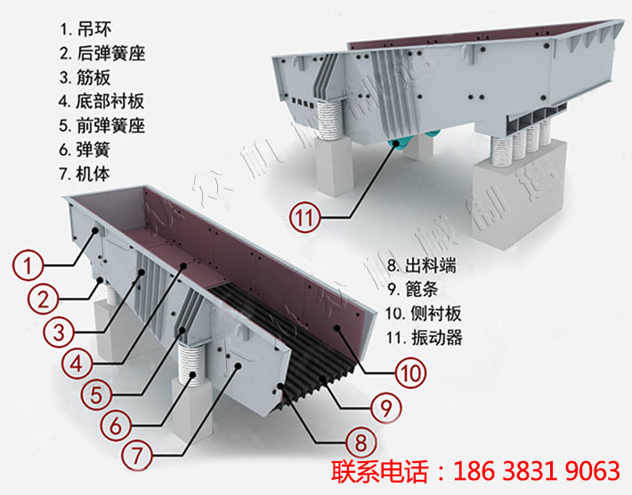 ZSW振動給料機分為兩類:鋼板結構和篦(bì)條結構。鋼(gāng)板結構的給料(liào)機多用(yòng)於砂石生產線(xiàn),作用是將物料全部(bù)均勻地送入破碎設備中;而(ér)篦條結構的給料機,可對物料進行粗篩分。在選用時候(hòu)根據生產情況選用適合的給料(liào)機。
