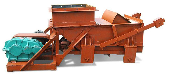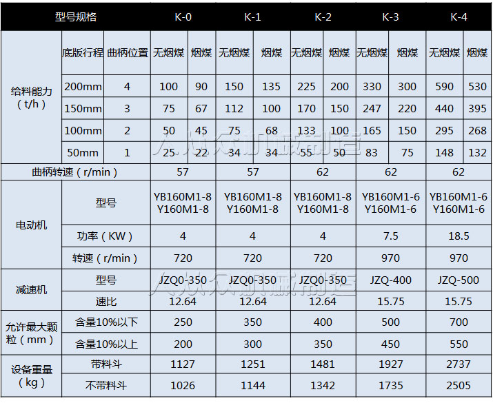 K型往複式給煤機是由機架、底板(給(gěi)料槽)傳動平台、漏鬥閘門、托輥等組成,機(jī)利用曲柄連杆機構拖動下傾5°的底板在輥上做直線往複(fù)運動,於煤或其他(tā)磨琢性小、粘(zhān)性小的鬆散粒(lì)狀物料的給料,從而將儲倉或料坑裏的煤或(huò)其它磨琢性小,粘性不大的鬆散粒狀,粉狀(zhuàng)物料(liào)從給料設(shè)備中均勻地卸(xiè)到運輸設(shè)備或其他篩選設備中。在(zài)生產線中多用於和皮帶輸(shū)送機等輸送設備相互配套,共同完成物流的運輸。也可將散料經料(liào)倉或直(zhí)接進行均勻的轉載到皮帶輸送機或其它篩選設備、貯存裝置等配合使用。實現對礦石、砂煤、糧(liáng)食等散裝物料的均勻給料。